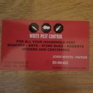 John White is the owner and operator of White’s Pest Control, headquartered in Erie, PA. This is a highly regarded pest control company in Erie County.
