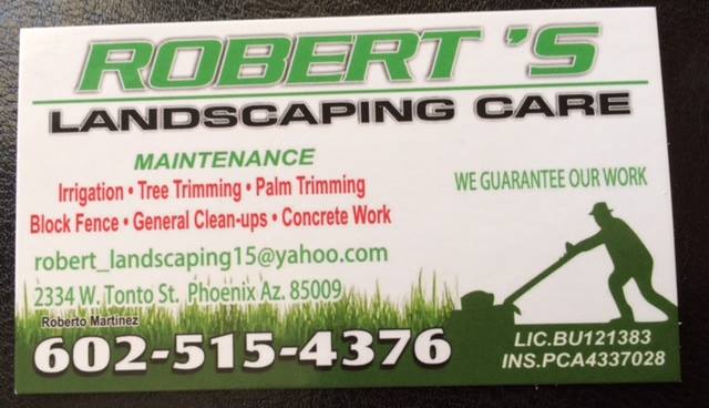 Robert Martinez is the owner and operator of Robert’s Landscaping Care, headquartered in Phoenix, Arizona. This is a highly regarded Landscape company in Maricopa County.